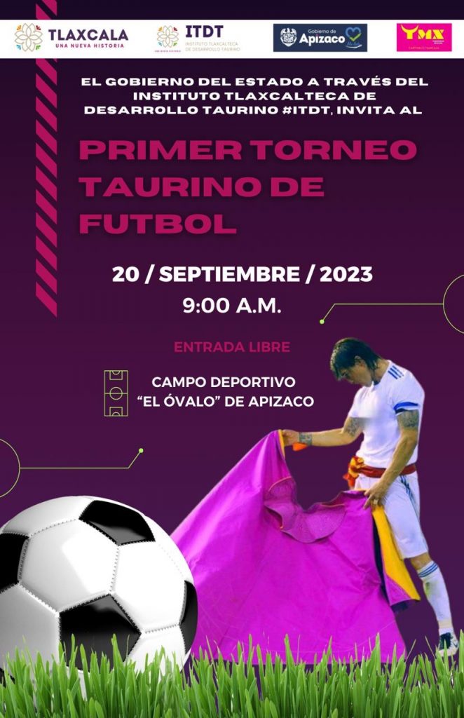 Los toros y el fútbol se empalmarán con el “Primer Torneo Taurino de Fútbol”, el campo deportivo “El Ovalo” de la ciudad de Apizaco será la sede dónde el próximo 20 de septiembre a partir de las 9 de la mañana se realice esta primera edición del torneo, promovido por el gobierno del estado a través del Instituto Tlaxcalteca de Desarrollo Taurino.