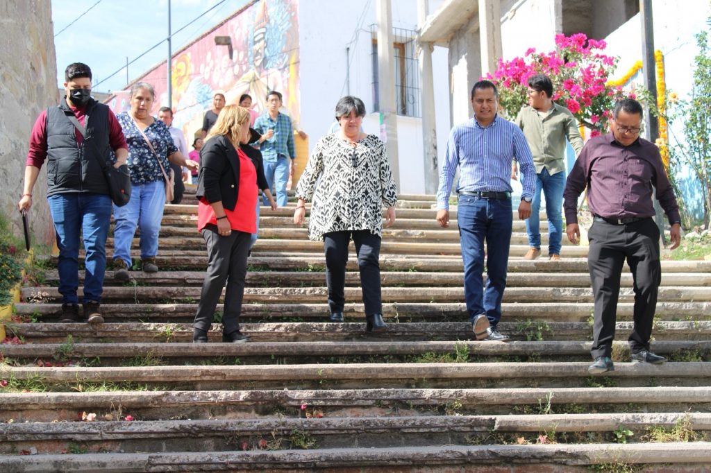 Acompañada del presidente de comunidad de esta localidad, Carlos Ávila Flores y de vecinos de la localidad, la alcaldesa capitalina, dijo que esta obra de rehabilitación de las escalinatas, será no solo en beneficio de todos quienes habitan en Tizatlán, sino de quienes visitan este lugar, de quienes tienen la necesidad de transitar por esta vía