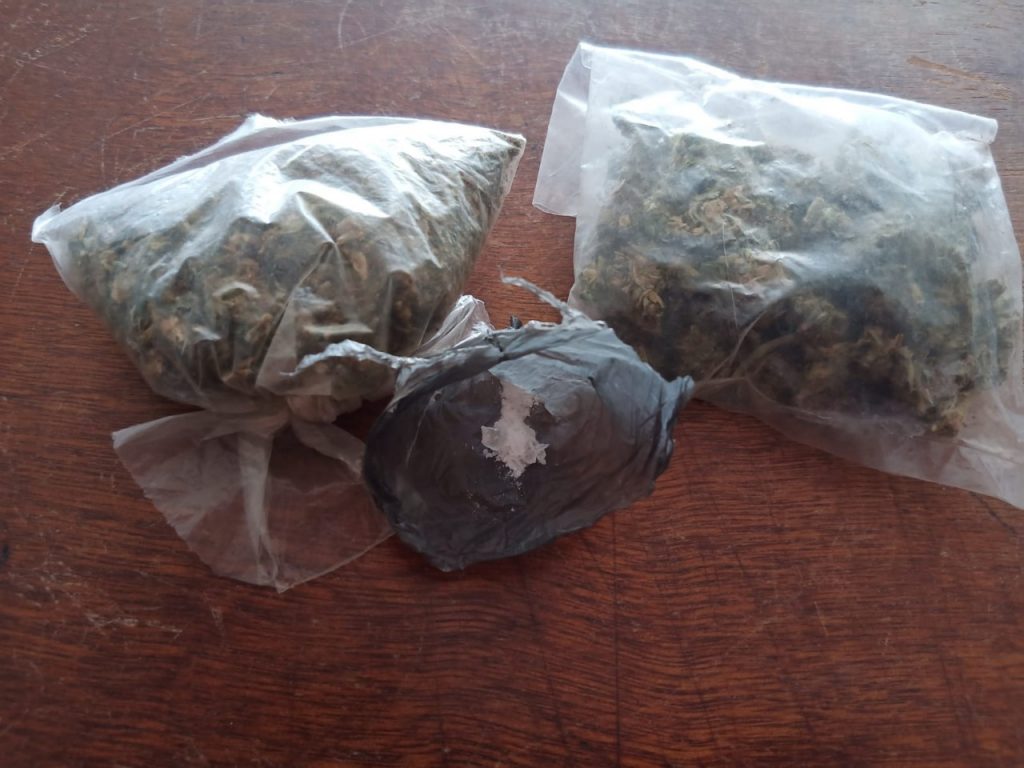 De esta manera, tras realizar una inspección al vehículo encontrado en calle Galeana con calle Jardines del municipio antes mencionado, los elementos de la Dirección de Seguridad encontraron al interior de la unidad tres envoltorios, uno con un contenido sólido granulado con características propias de la droga conocida como cristal y dos más con hierba seca particularmente conocida como marihuana.