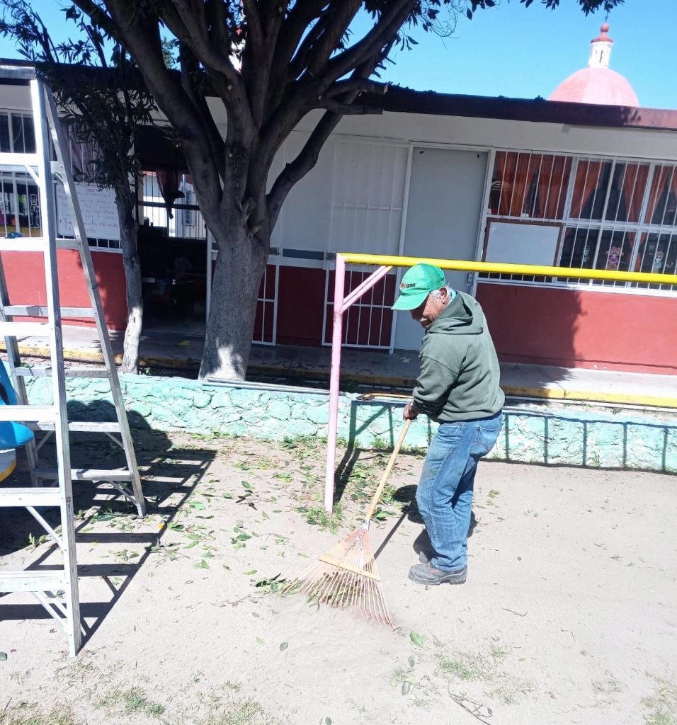 Como parte de las estrategias tendentes a generar espacios seguros, el ayuntamiento de Apetatitlán de Antonio Carvajal, que preside el panista Ángelo Gutiérrez Hernández, realiza labores de limpia y poda de pasto en áreas verdes en beneficio de infantes, maestros y padres de familia.