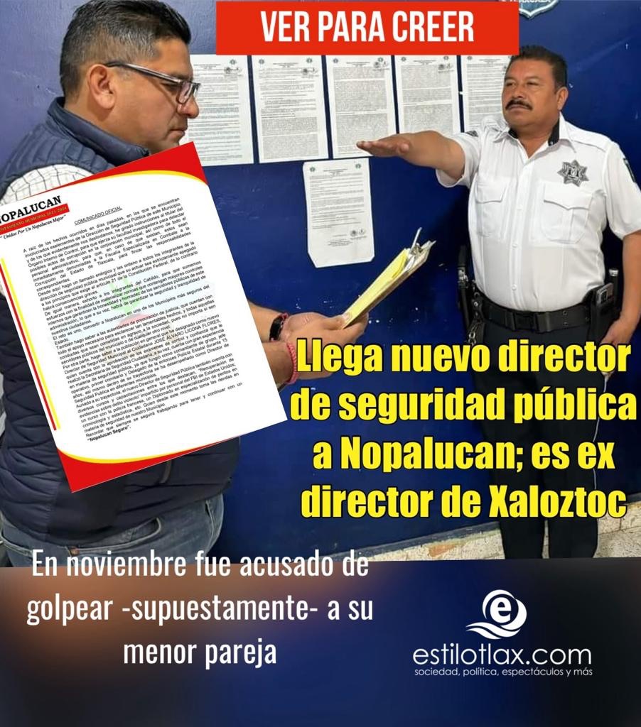Esta tarde, a través de la página oficial del ayuntamiento de Nopalucan, se dió a conocer que el nuevo director de seguridad pública es José Alvaro Licona Flores, quien en noviembre del 2023, fue señalado de golpear a una adolescente en el municipio de Tocatlán, pero no fue detenido ya que se escondió en la vivienda, pese al señalamiento y la denuncia en su contra.