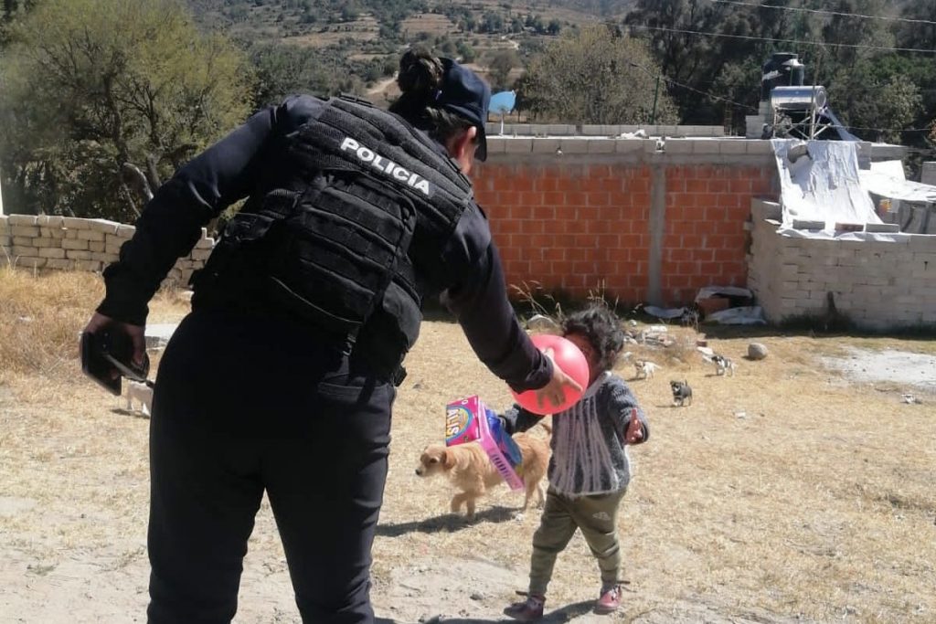 La alegría y la ilusión llegaron de la mano de elementos de la Dirección de Seguridad Pública, Tránsito y Protección Civil de Huamantla, al entregar juguetes a niñas y niños de escasos recursos de algunas comunidades del Pueblo Mágico.