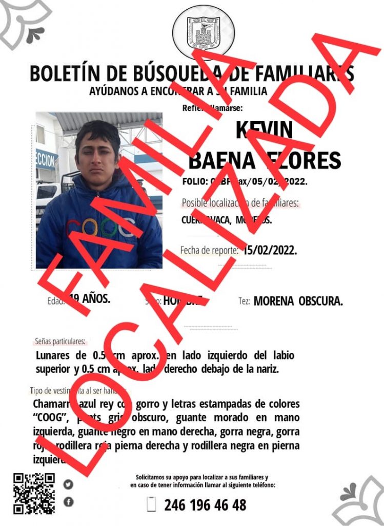 Siguiendo los protocolos de búsqueda, las autoridades municipales establecieron contacto con los familiares de Kevin N. para hacerles saber que se encontraba en las instalaciones de la Dirección de Seguridad de Huamantla.