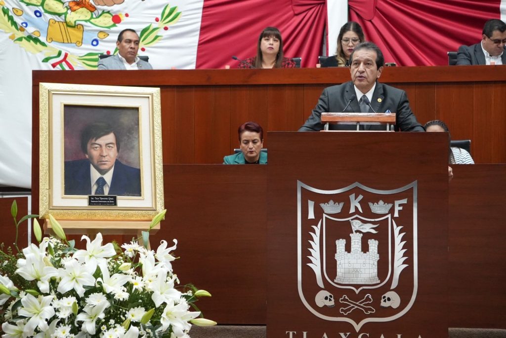 En la máxima tribuna tlaxcalteca, el legislador Fabricio Mena Rodríguez, fue el encargado de leer la semblanza del ex mandatario Tulio Hernández Gómez, acto que señaló como un honor con profunda emoción y respeto.