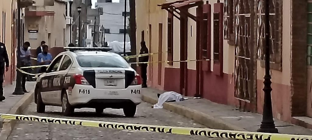 Policía del lugar acordonó la zona en lo que llegaba el SEMEFO para realizar el levantamiento del cadáver.