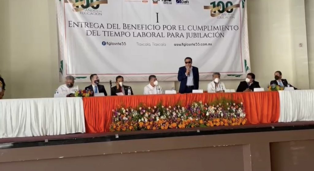 El Director General de Pensiones Civiles de Tlaxcala, Cp. Oscar Arze Cepeda asistió en representación de la gobernadora de Tlaxcala, Lorena Cuellar Cisneros a la I Entrega del Beneficio por Jubilación o Retiro a 36 socios del Fideicomiso Global de la Sección 55 del SNTE.