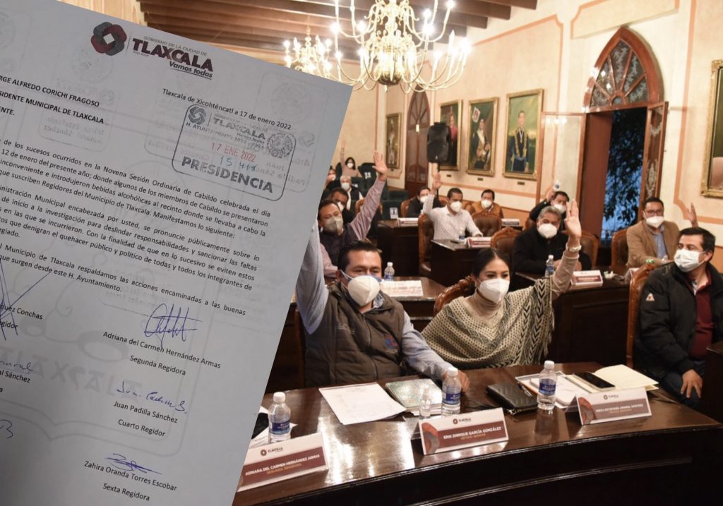 A través de un oficio, seis regidores del municipio de Tlaxcala, pidieron al alcalde Jorge Corichi una investigación y pronunciamiento público ante los hechos suscitados en la pasada sesión de Cabildo en donde algunos integrantes ingresaron a la sala en estado inconveniente.