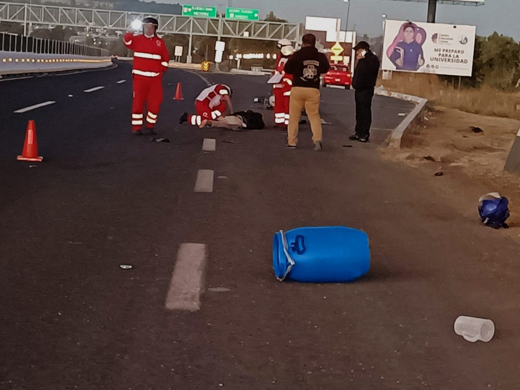 Tráfica muerte encontró un motociclista al ser embestido hoy viernes por la mañana en el libramiento Tlaxcala- Chiautempan.