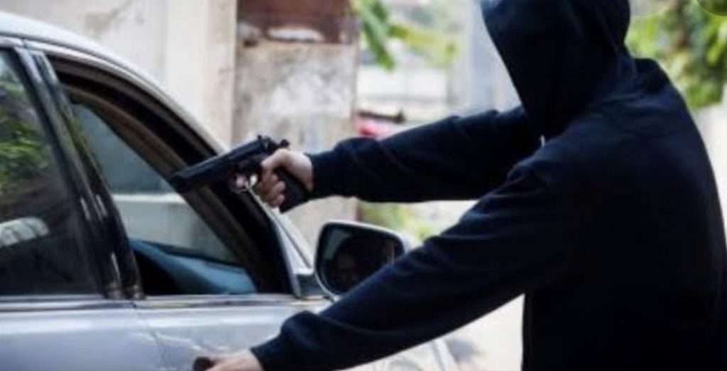 Aprovechando la pésima vigilancia policíaca dos pillos armados robaron un vehículo en la carretera Calpulalpan- Apizaco pasando las vías.