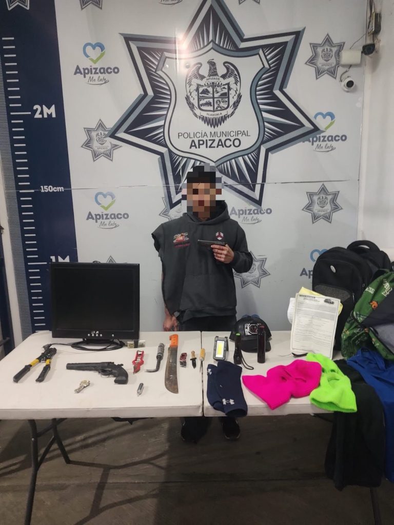 Oficiales de la Dirección de Seguridad Pública Municipal, Vialidad y Transporte de Apizaco, aseguraron a cinco individuos, entre ellos cuatro menores de edad, por su presunta participación en un caso de allanamiento de morada.