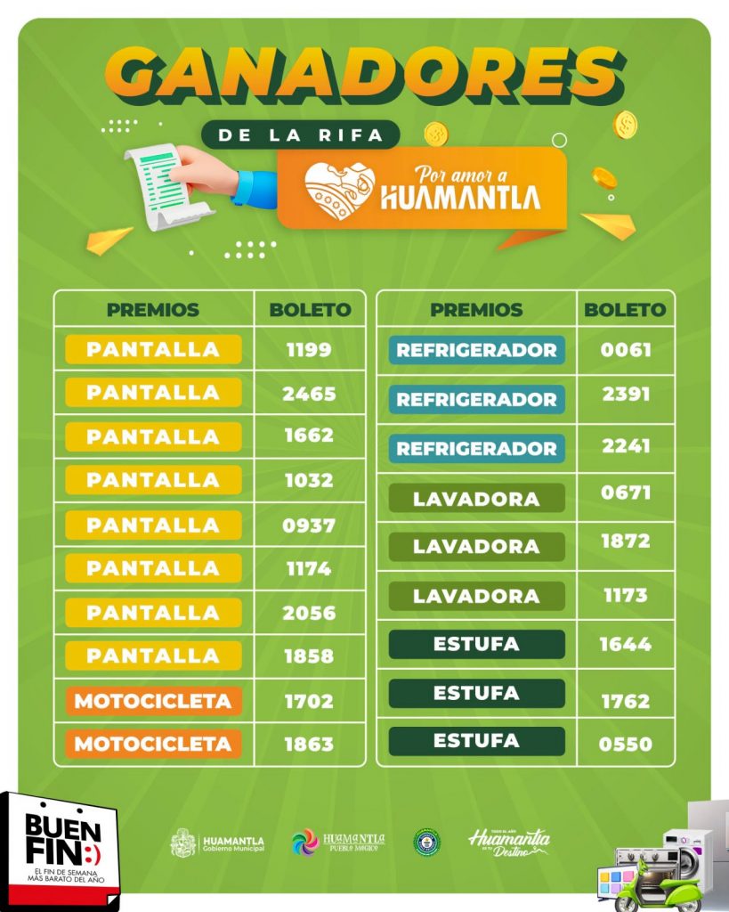 El Gobierno de Huamantla celebró este viernes la gran rifa de electrodomésticos, pantallas y motocicletas entre ciudadanos cumplidos que aprovecharon los descuentos ofrecidos durante el “Buen Fin 2024”.