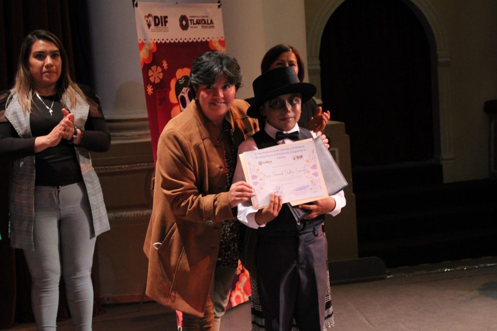 La presidenta municipal de Tlaxcala, Maribel Pérez Arenas, premió la tarde este lunes, a los ganadores de concurso de calaveritas literarias, en las que participaron niños y jóvenes de