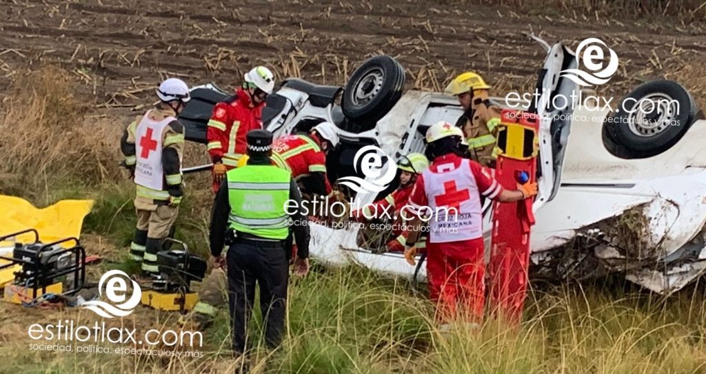 Por lo anterior, la unidad quedó con las llantas hacia arriba y el masculino resultó prensado de las piernas al interior de la unidad.
