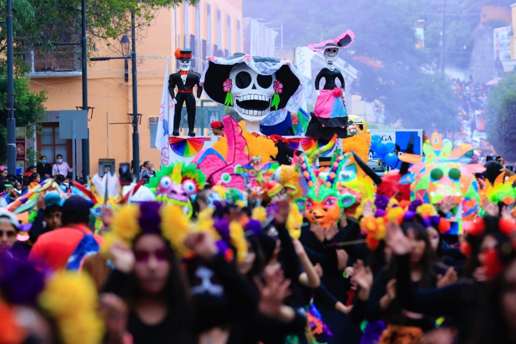 El recorrido de esta parada festiva inició en la calle Ocotelulco, a un costado del Bulevar del Maestro y avanzó por las avenidas Independencia y Juárez, en donde cientos de tlaxcaltecas se dieron cita para disfrutar del evento en el que se admiraron a catrinas, catrines, rezanderas, fantasmas, alebrijes, y carros alegóricos con altares y ofrendas, así como zanqueros y una batucada.