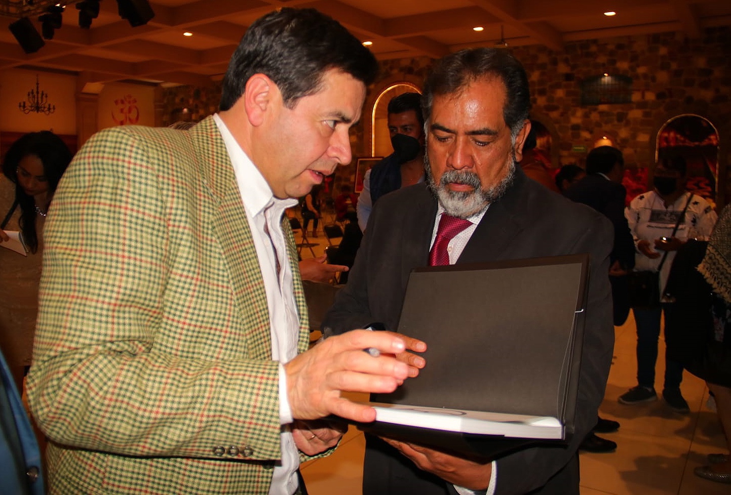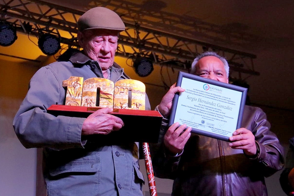 Esta tarde en el salón «Real de Cantera» en el centro de Huamantla, Pueblo Mágico, La Peña Taurina Huamantla A.C. con su presidente Sergio Hernández Gálvez y el vice presidente Luis Mariano Andalco, acogieron con una impresionante audiencia y en un elegante salón al ganadero Sergio Hernández González para la presentación de su Libro «Rancho Seco Cien años de amor al toro», la bienvenida al público estuvo a cargo del maestro Rogelio Palafox Gutiérrez que presentó al ganadero Sergio quién escucho una clamorosa ovación con los asistentes de pie, su esposa Vicky Weber y su hijo Sergio Hernández Weber le acompañaron.