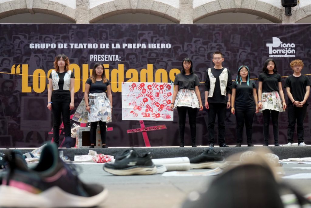 Bajo la dirección y dramaturgia de la maestra Ana Laura Lima, el patio Vitral fue sede de un performance basado en hechos reales en el que los jóvenes hacieron un recorrido histórico, contando sucesos que han sacudido y cambiado al país, como la matanza de Tlatelolco en 1968, la desaparición de los 43 normalistas, crímenes de odio en contra de la comunidad LGBTTTIQ+, feminicidios, trata de personas, entre otros acontecimientos dolosos.