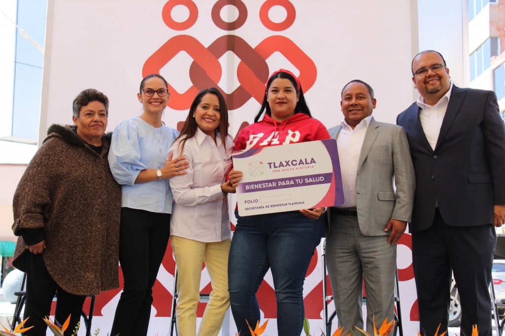 Este martes, Fernanda Espinosa de los Monteros Cuéllar, Presidenta Honorífica del Comité Consultivo de Bienestar y Desarrollo Social del Estado de Tlaxcala; la Mtra. María Estela Álvarez Corona, Secretaria de Bienestar del Estado de Tlaxcala; Javier Rivera Bonilla, Presidente Municipal de Apizaco y el Lic. Juan Pablo Rico Morales, Secretario de Ayuntamiento de Apizaco,encabezaron el evento de entrega simbólica de tarjetas del Programa Bienestar para tu Salud de la Secretaría de Bienestar del Estado de Tlaxcala, que beneficia a familias en situación vulnerable para que puedan acceder a servicios médicos gratuitos.