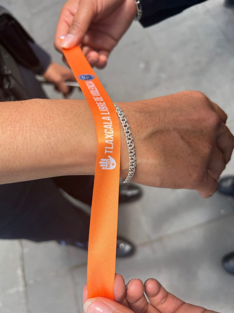 Además, en los municipios de Zacatelco y San Pablo del Monte se entregaron más de 100 pulseras simbolizando la unión a la campaña, además de que se realizó un mural denominado “Tlaxcala libre de violencia” donde estudiantes y público en general pegaron pensamiento y escribieron palabras en torno al tema.