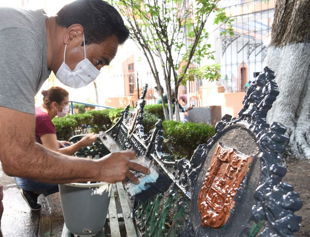 Los trabajos que se realizaron en las oficinas fueron de limpieza profunda, lavado de pisos, barandales, escaleras, techos, luminarias, pintura en botes,contenedores de desechos, bancas, resanado de grietas en algunos muros, jardinería y deshierbado de áreas verdes así como desinfección de oficinas.