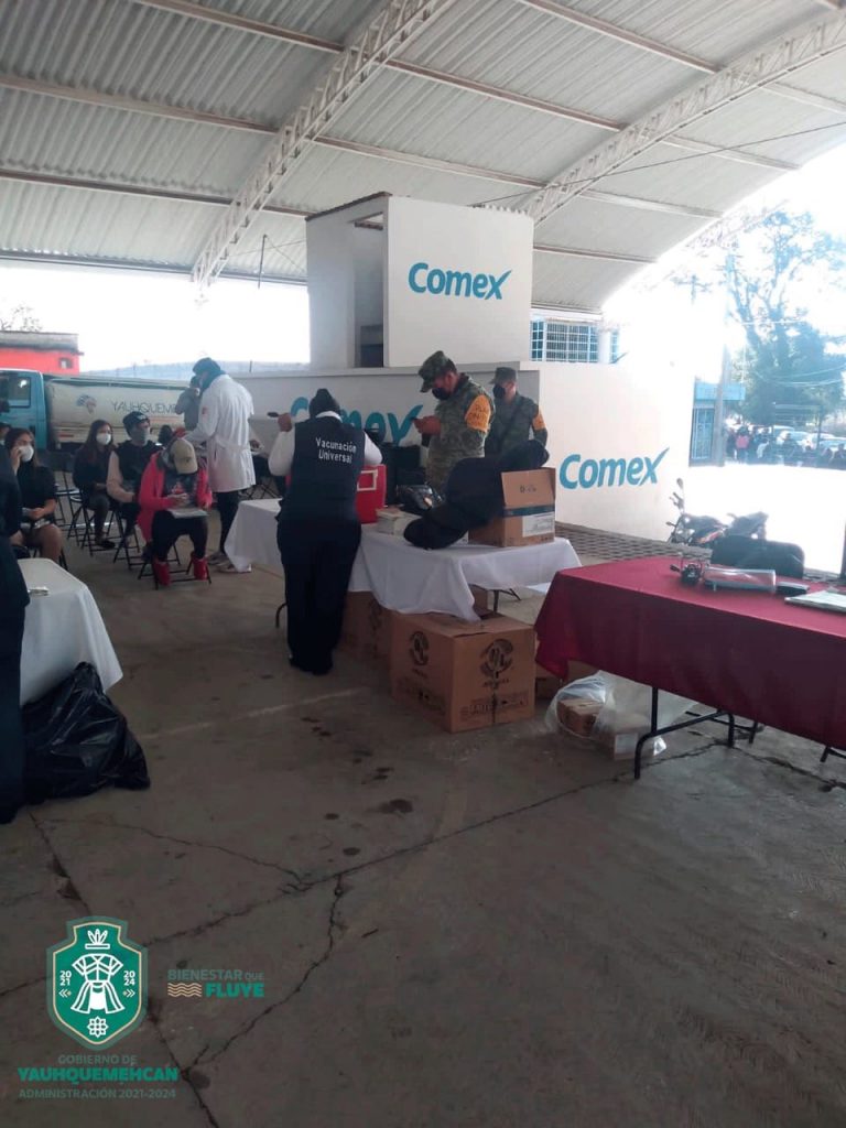 Dicha jornada, que se efectuó en la Plaza del Huehue, fue coordinada por personal de la Dirección de Salud municipal, quienes apoyaron a personal de la Secretaría del Bienestar. Para el resguardo de la misma, acudió personal del Protección Civil y Seguridad Pública de Yauhquemehcan, en coordinación con el Ejército Mexicano.