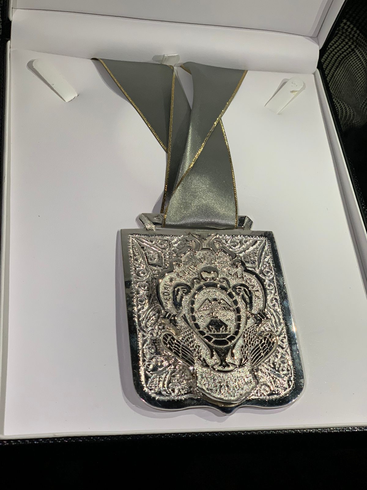 El emblema que fue entregado simbólicamente en la solemne ceremonia a los y las representantes de los hospitales y centros médicos de atención COVID19, posee un valor único, ya que por años, está distinción fue entregada en lo individual; sin embargo, en esta ocasión el presidente municipal de Tlaxcala, promovió el rescate original de este alto honor al mérito social.