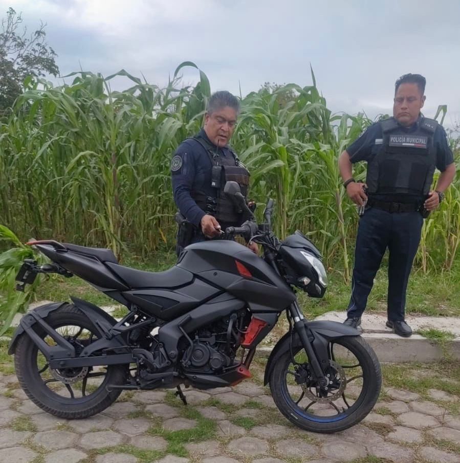 Elementos de la Dirección de Seguridad Pública Municipal, Vialidad y Protección Civil de Chiautempan, aseguraron una motocicleta con reporte de robo que momentos antes fue abandonada.