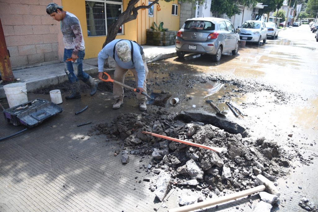 Por ello, dada la presión y el peso de la maquinaria para efectuar los trabajos de colocación de concreto, se fracturaron los tubos que alimentan los hogares en esta vialidad, provocando cuatro fugas en las instalaciones que tienen más de 30 años de antigüedad.