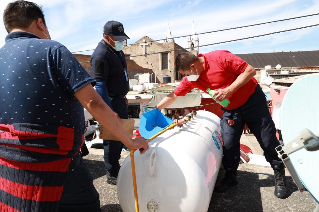 Revisa Protección Civil municipal de Chiautempan gas estacionarios del Mercado Hidalgo
