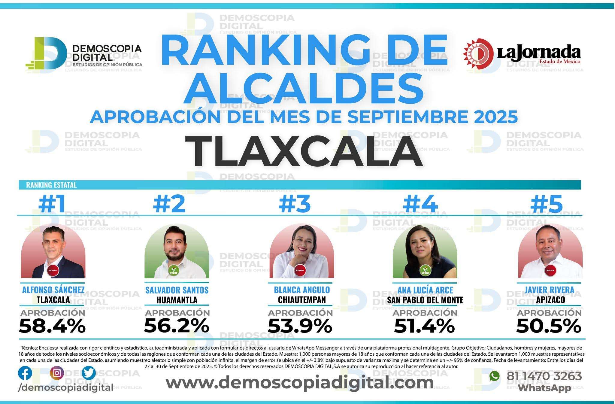 Este resultado confirma una tendencia positiva que ya había sido registrada semanas atrás, según mediciones previas realizadas por la prestigiada casa encuestadora Mitofsky, que también ubicaba al edil huamantleco entre los mejor evaluados en el estado.