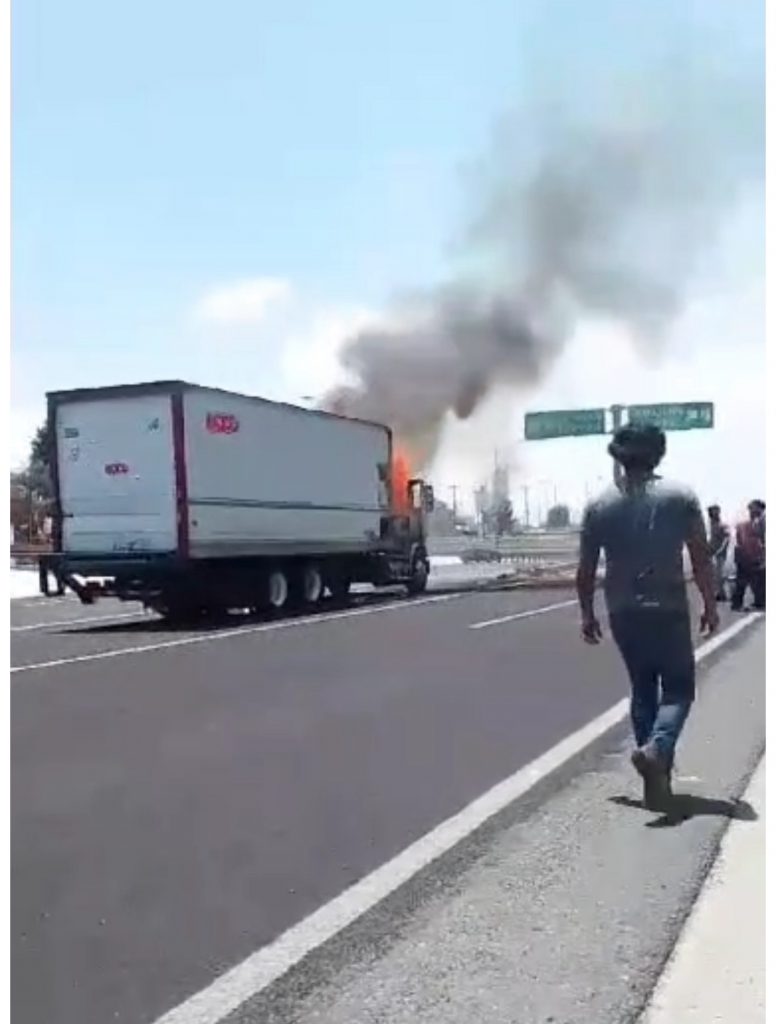 Durante esta tarde, un camión se incendio sobre la carretera federal Tlaxcala-Apizaco, a la altura de Belén Atzitzimititlán, Apetatitlán.