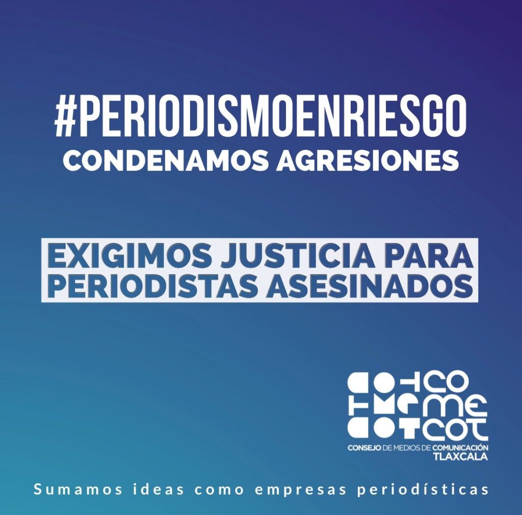 Ante los recientes asesinatos de periodistas y de una larga lista de agresiones a comunicadores que han quedado en los anaqueles de la impunidad en el país, el Consejo de Medios de Comunicación de Tlaxcala (COMECOT), se unirá a la protesta virtual que se realizará -este martes- en varios estados del país, por parte de reporteros.