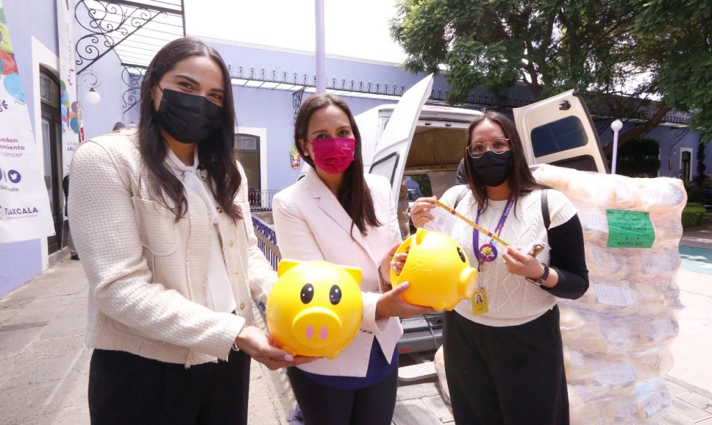 La promotora de recolección estatal del Teletón, María Esther López entregó a la presidenta honorífica y a la directora general del Sistema Estatal DIF, Mariana Espinosa de los Monteros Cuéllar y Flor López Hinojosa, respectivamente, las alcancías para la colecta de este año, en el que participarán los sistemas municipales DIF, así como algunas dependencias del gobierno estatal.