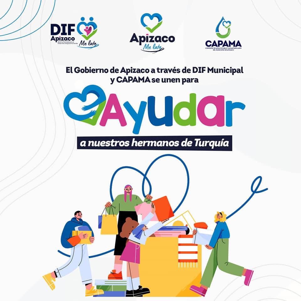 🤝 Es momento de unión, súmate a la campaña del Gobierno de Apizaco para apoyar a nuestros hermanos de Siria 🇸🇾 y Turquía 🇹🇷