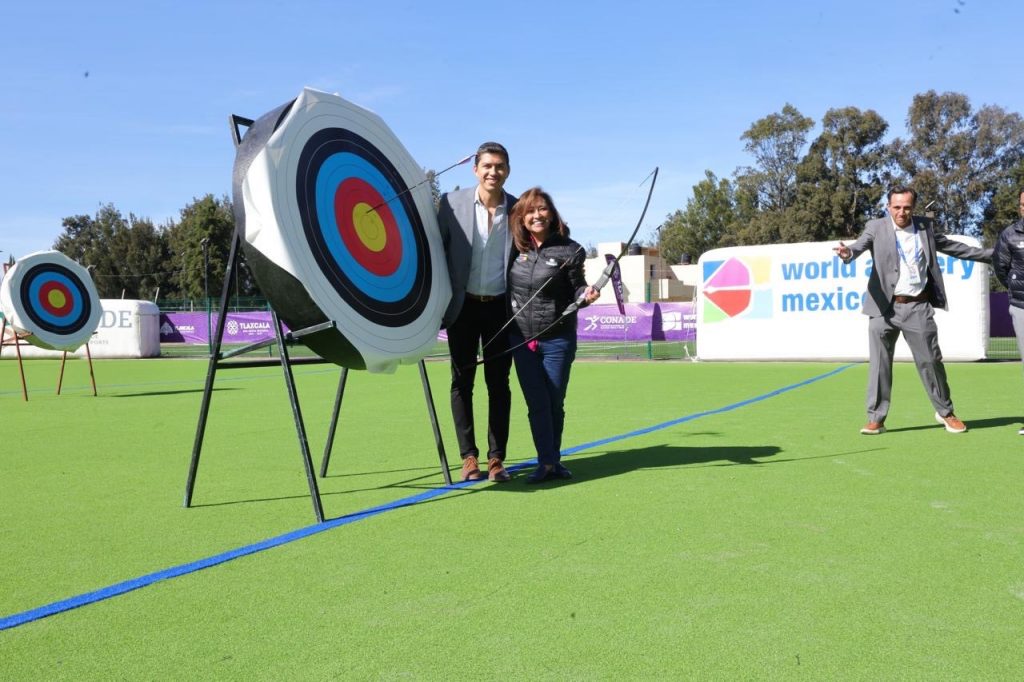 Acompañada de las autoridades federales, estatales y Tom Dielen, el secretario general de World Archery, la atleta paraolímpica pionera en México en tiro con arco, Ana Maria Tenorio, la gobernadora, Lorena Cuéllar realizó el tiro inaugural.