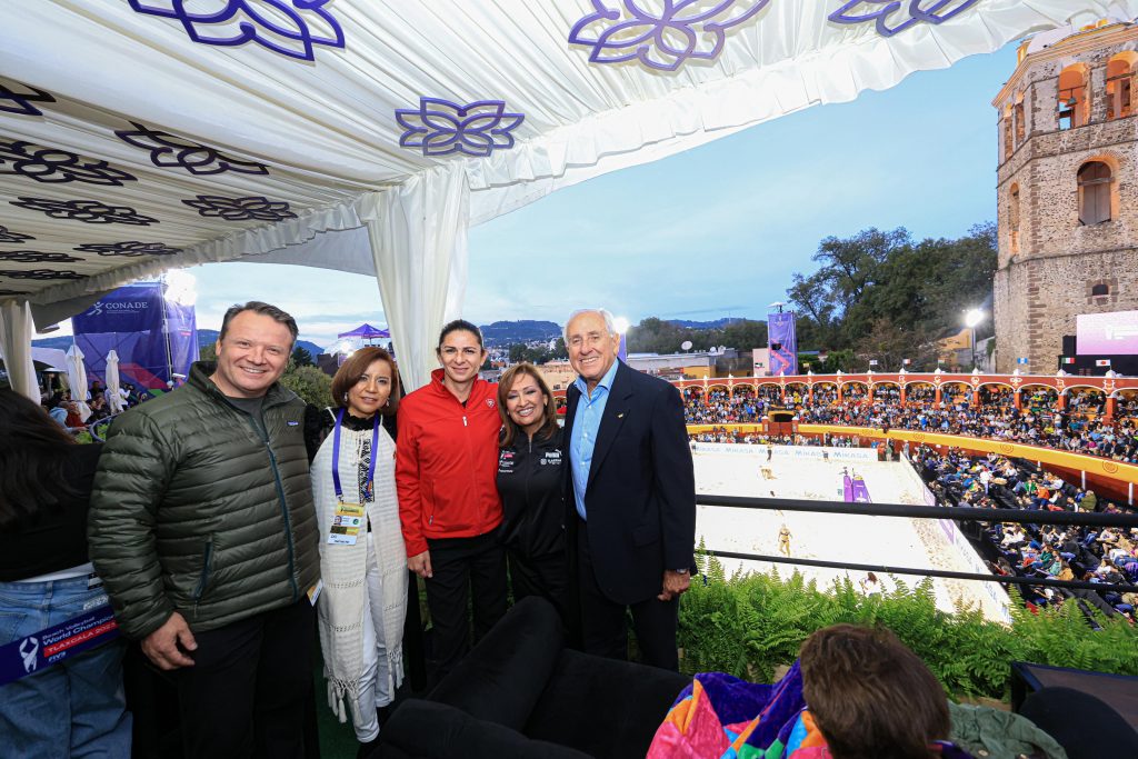 Acompañando a la gobernadora, estuvo de la directora general de la Comisión Nacional de Cultura Física y Deporte (Conade), Ana Gabriela Guevara Espinoza; el presidente de la Federación Internacional de Voleibol de Playa (FIVB) Ary Graça Filho y su homólogo en México, Jesús Perales Navarro; quienes reconocieron la gran anfitrionia y organización de las autoridades tlaxcaltecas para llevar a buen puerto el Campeonato.