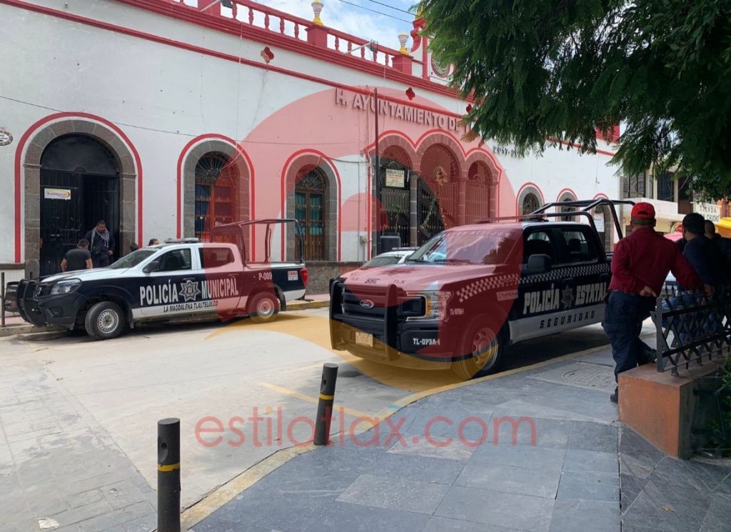 Este martes, policías y trabajadores del Ayuntamiento de La Magdalena Tlaltelulco, realizaron un paro de labores para exigir salarios y prestaciones caídas.