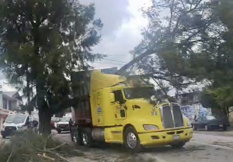 Un trailer pierde el control y se impacta contra árbol, estos hechos sucedieron en la calle que conduce al Hospital Regional de Tzompantepec, debido al golpe una gran rama cayó sobre cables de energía eléctrica lo que ocasionó que varios hogares se quedaran sin luz.