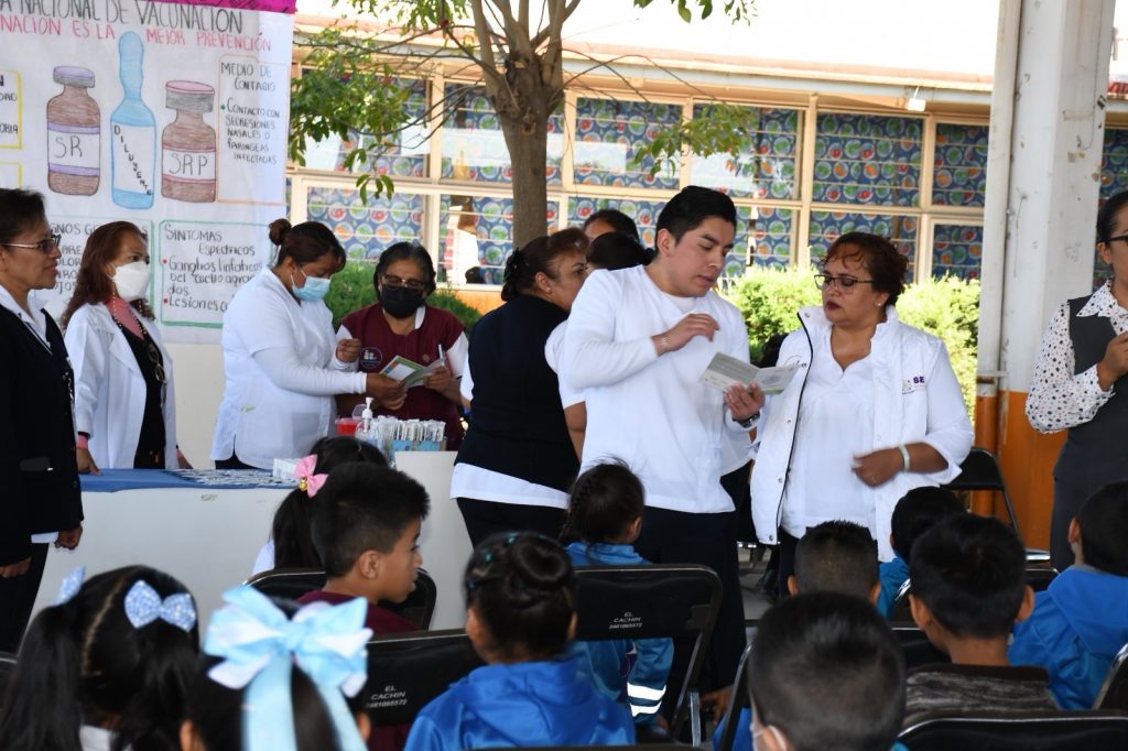 Con la finalidad de completar los esquemas de vacunación para prevenir enfermedades, autoridades estatales y federales del Sector Salud visitaron y vacunaron a los alumnos de las escuelas primarias “Domingo Arenas” y “Abraham Castellanos” del municipio de Tepetitla, como parte de la Campaña de Recuperación de Coberturas en Vacunación contra sarampión, rubéola y poliomielitis, que culminará el 31 de mayo de 2024.